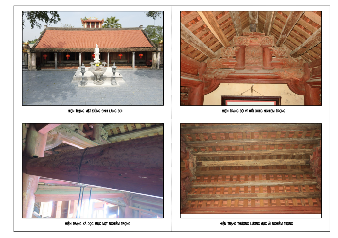 Thế nhưng, thời gian không ngừng bào mòn. Những kèo cột chạm trổ tinh xảo nay đã mục ruỗng vì mối mọt. Mái đình xô lệch, những vết nứt rạn hằn rõ trên từng phiến tường. Không gian chung quanh cũng dần thiếu đi sự hài hòa khi các công trình cũ kỹ không còn đủ sức phục vụ nhu cầu sinh hoạt văn hóa, tín ngưỡng ngày một lớn của cộng đồng.